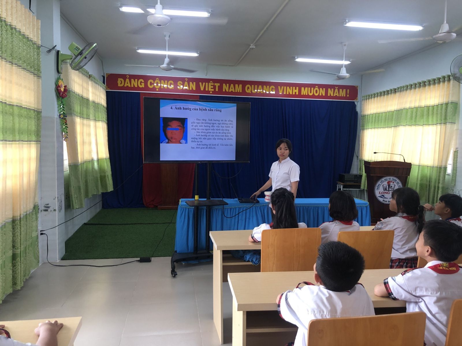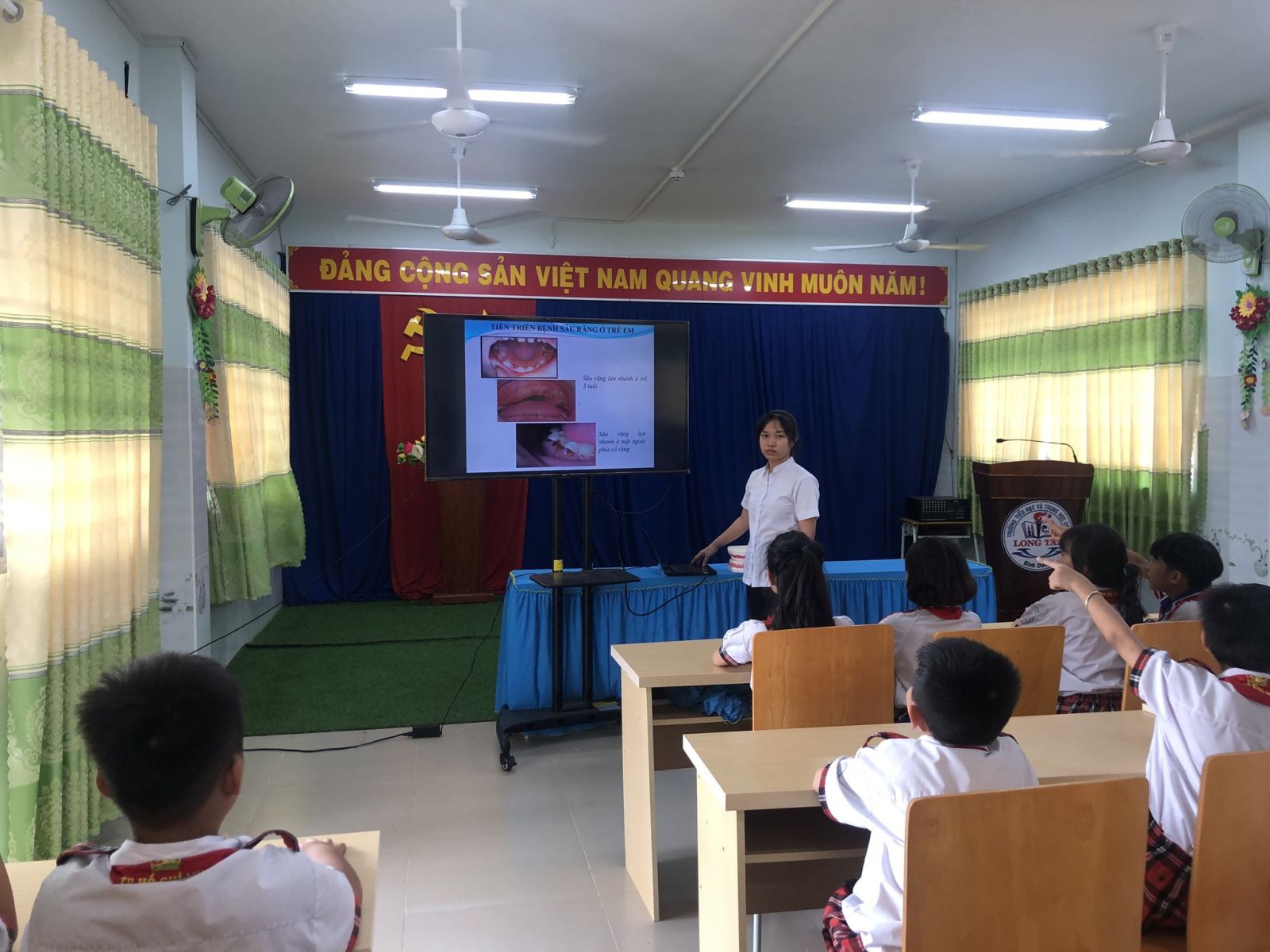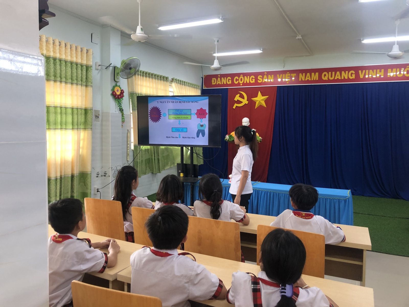Nhằm nâng cao ý thức giữ gìn và chăm sóc sức khỏe răng miệng cho học sinh, chiều ngày 07/4/2024 Liên đội phối hợp với Y tế nhà trường tuyên truyền cho học sinh phòng chống các bệnh răng miệng. Giúp các em hiểu và nắm được nguyên nhân sâu răng, viêm lợi từ đó biết cách giữ gìn vệ sinh răng miệng và bỏ những thói quen xấu có hại cho răng để phòng bệnh răng miệng.